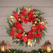 1 x 20" Holiday Christmas Wreath with Red Roses Gold Balls and Pinecones - Suitable for Indoor/Outdoor Festive Decorations