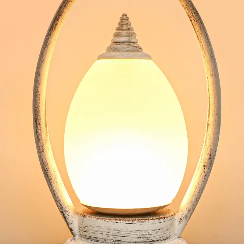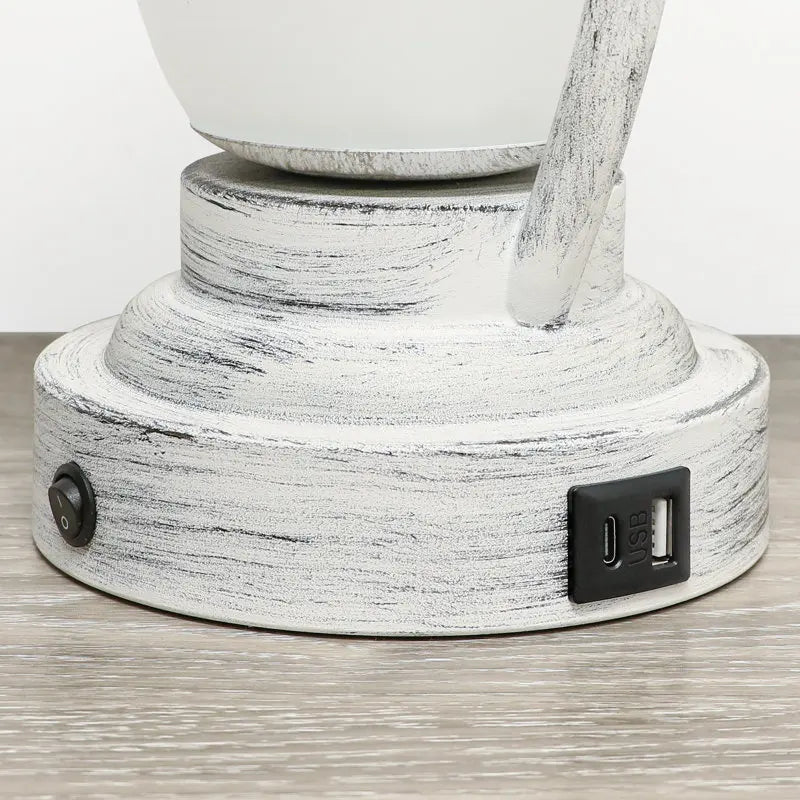 23 Inch Coastal Table Lamps,Rotary Switch Top Light+ Nightstand Light,Weathered White Metal+Frosted Glass,Fabric Shade