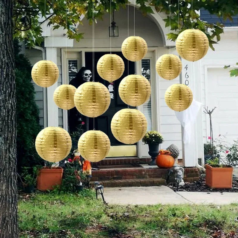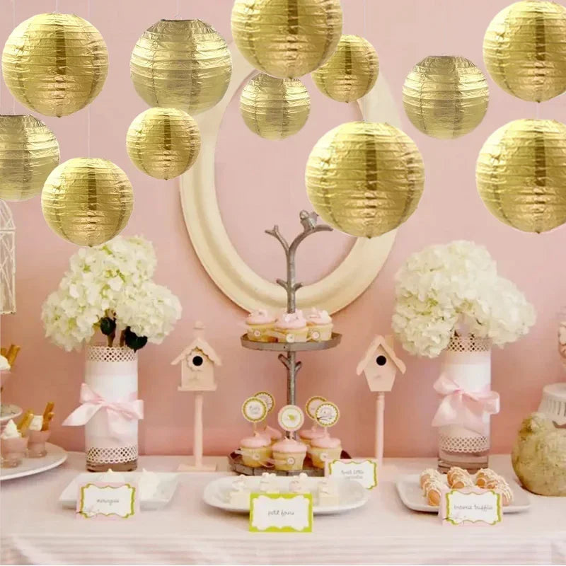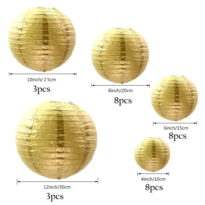 30Pcs/Lot 4-12inch Gold Chinese Paper Lantern DIY Round Ball Lampion Hanging For Wedding Birthday Party Baby Shower Decoration