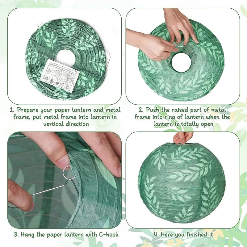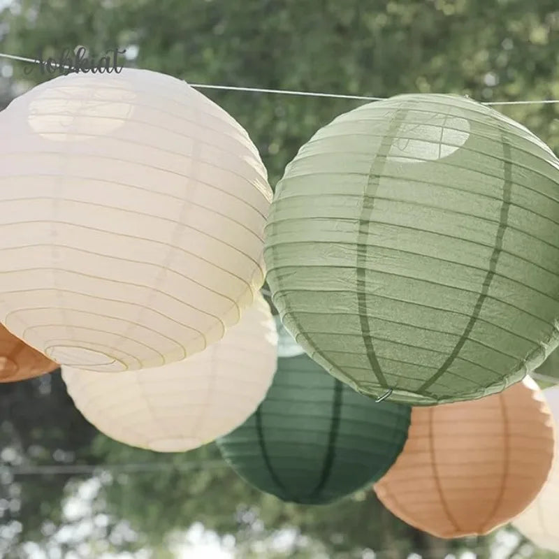 6pcs Round Hanging Paper Chinese Japanese Lanterns Decorations for Sage Green Rustic Wedding Birthday Party Baptism Supplies