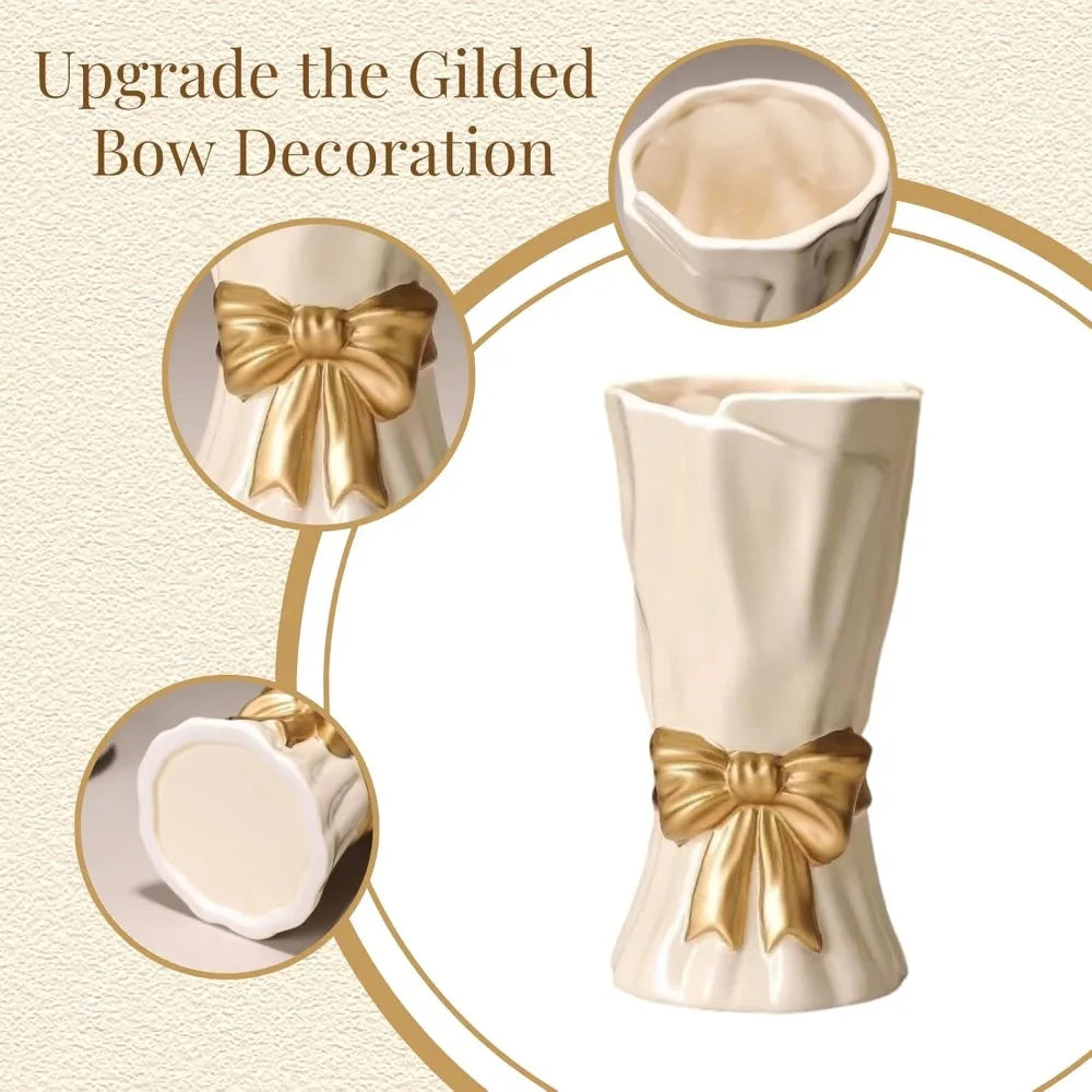 Bow vase, white vase for home décor, white ceramic vase for bohemian style