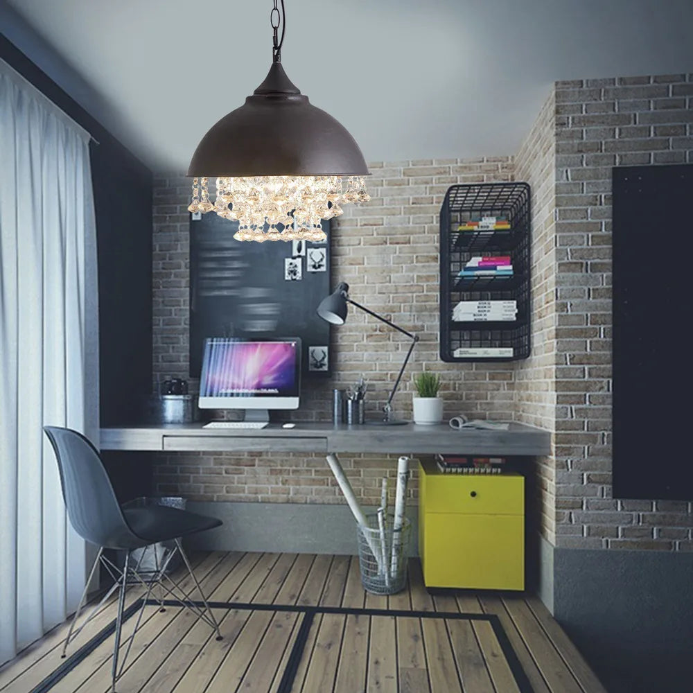 Bymaocar Rustic Industrial Crystal Pendant Light Vintage Chandelier Ceiling Lamp Fixture Fit 5-10m² Room with Adjustable Chain