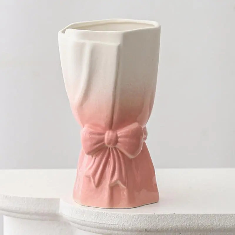 Ceramic Flower Bow Vase Bouquet Vase Plants Pot Dried Flowers Branches Vase Plants Basket Nordic White pink Ceramic Vase