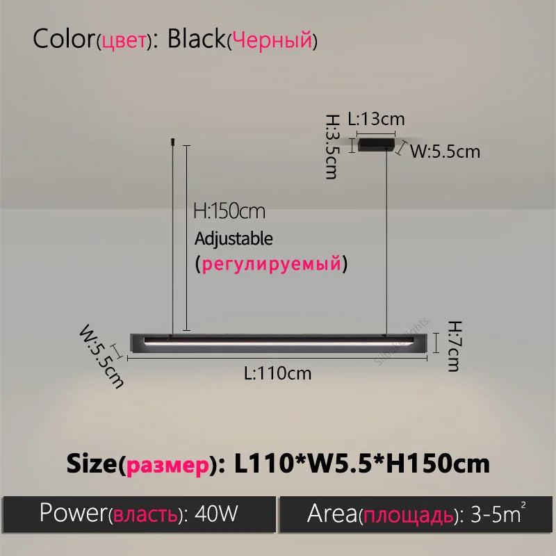Dining room chandelier led extremely simple office anti-blue light eye protection study long strip modern lamp Pendant light