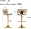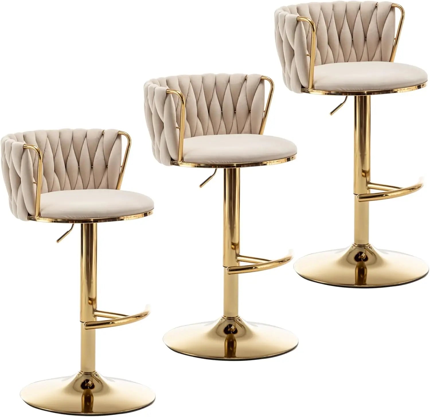 Gold Velvet Bar Stools Set of 3, Swivel Counter Height Bar Stools with Back