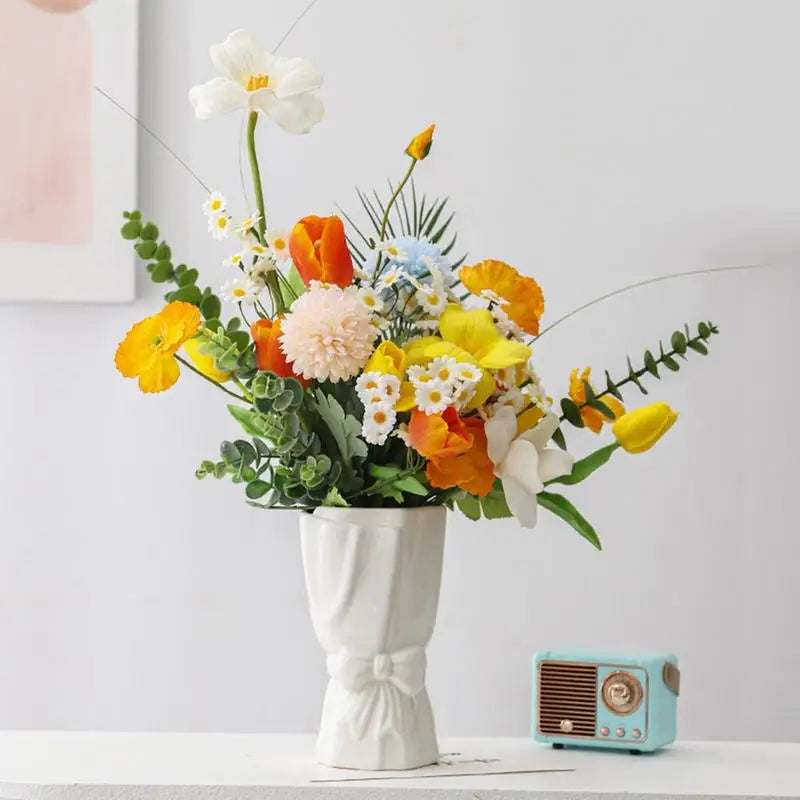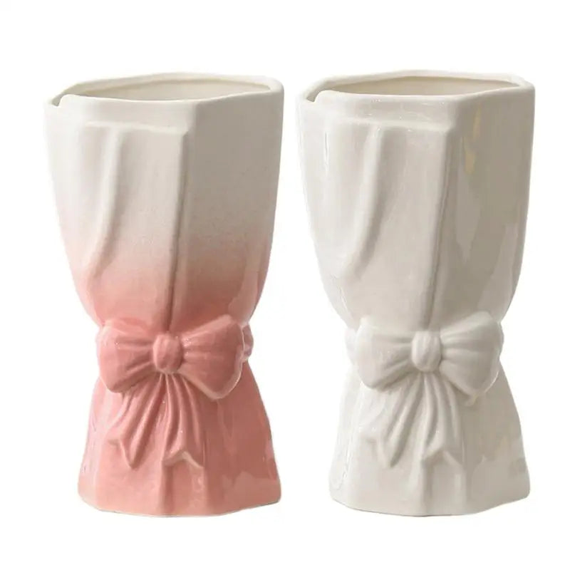 Home Tabletop Vase Simple Home Decor Creative Bow Decorative Bouquet Ceramic Flower Vase Decoration for Living Room