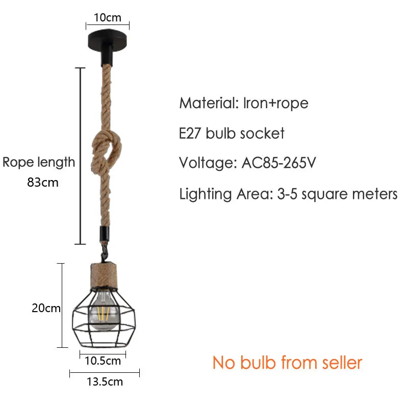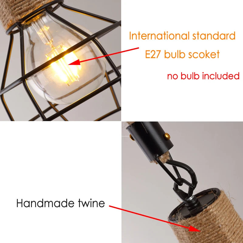 Industry Loft Chandelier Vintage Hemp Rope Pendant Lamp Aisle Bar Dining Room Hanging Lamp Restaurant Cafe Light Droplight