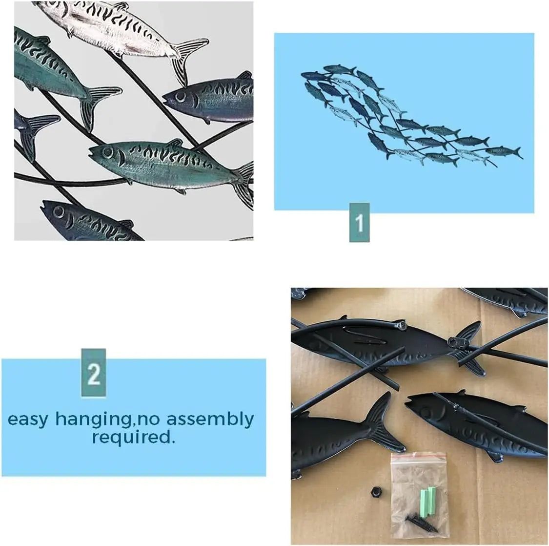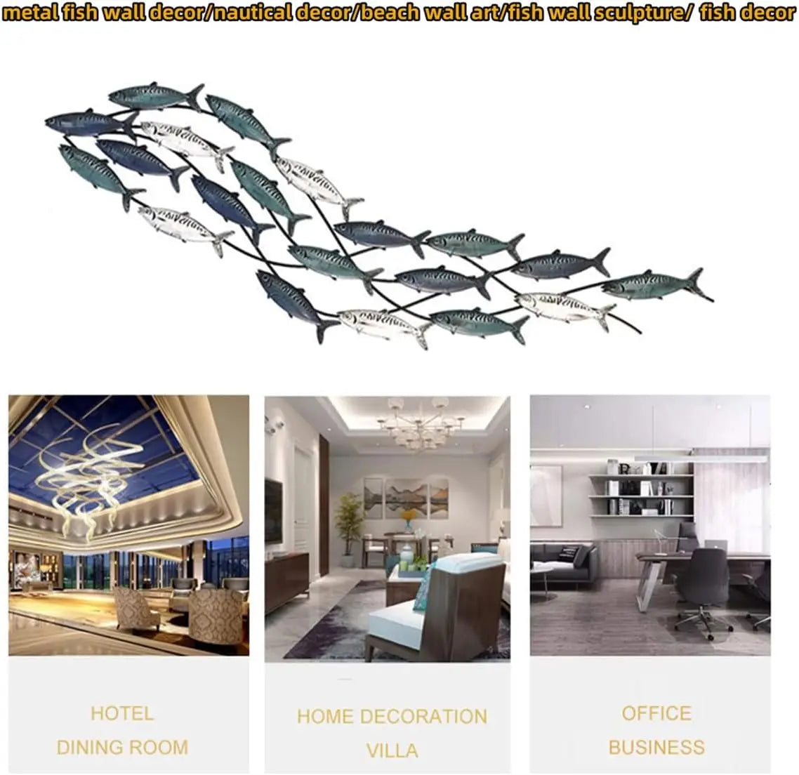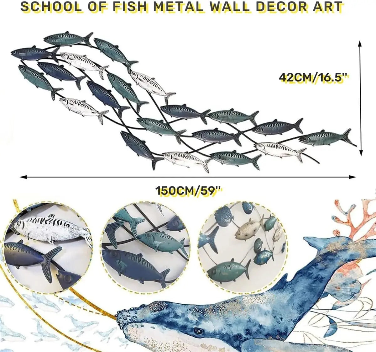 Metal Fish Wall Art Decor, Large Coastal Nautical Beach fish Wall Art Décor,School of Fish Wall Art Sculpture for