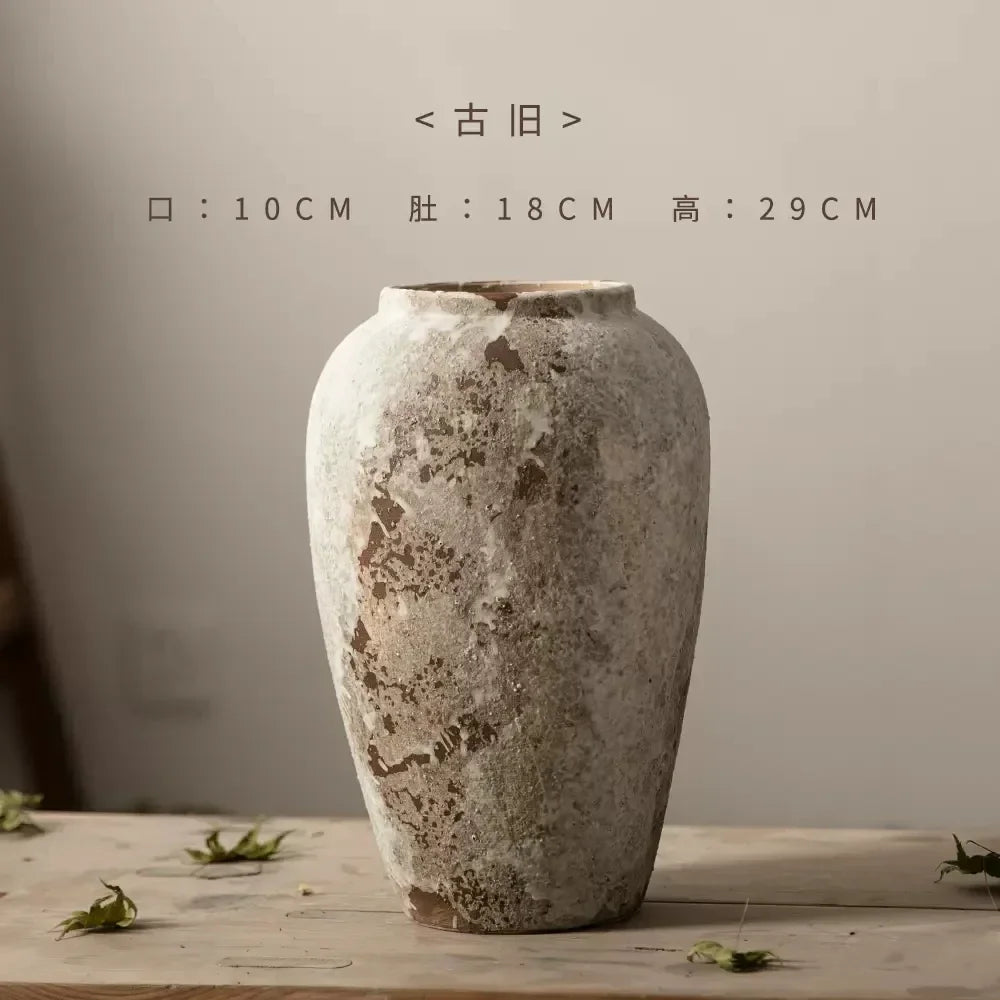 Mottled Retro New Chinese Style Decorative Ornaments Flower Arrangement Water Culture Ceramic Vase