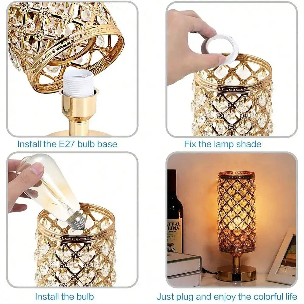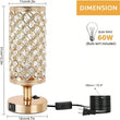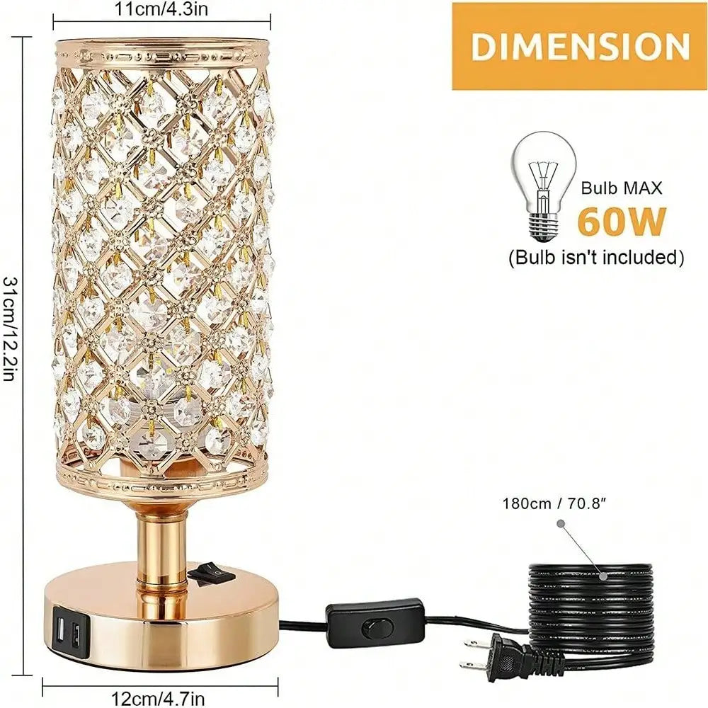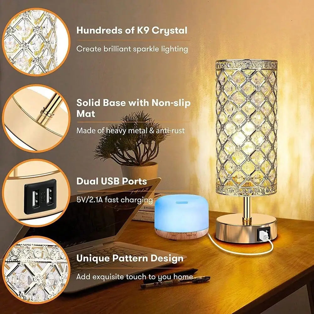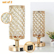 Set of 2 USB Crystal Nightstand Lamp Bedside Table Lamps with 2 Charging Ports